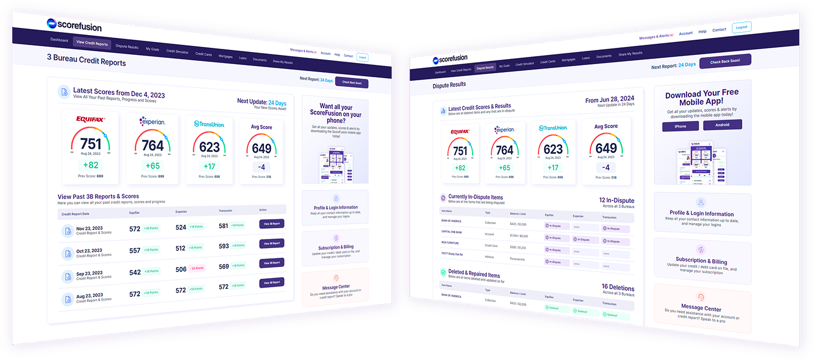 That’s right! Why settle for a credit score and Report from just one bureau when you deserve all three. Get immediate access to all three of your scores and reports from any device at any time.