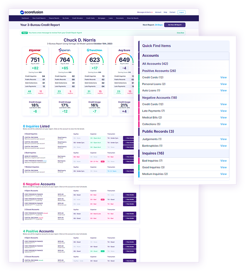 Now you can access the new credit report dynamic layout with easy to navigate sidebar tools.